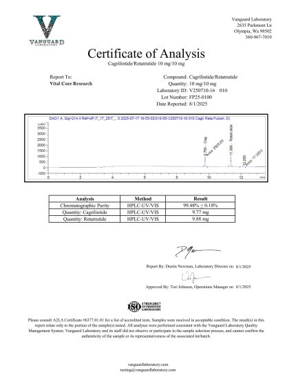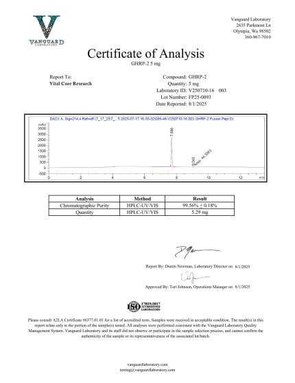 Each vial of lyophilized peptide comes in a 3ml vial which will require reconstitution. Each vial is safety sealed in the laboratory to ensure security during transport, storage and shipment. Vital Core Research cares about the most accurate result for your research. For that reason, we never compromise the quality of our SARMs and peptides.