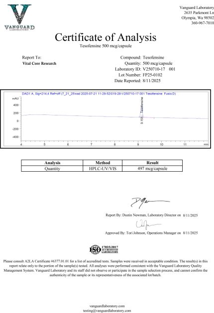 Please note that all products at Vital Core Research are meant ONLY for research purposes. They should not be used for any other purpose whatsoever. Please familiarize yourself with our Terms and Conditions before ordering. Vital Core Research cares about transparency above all.