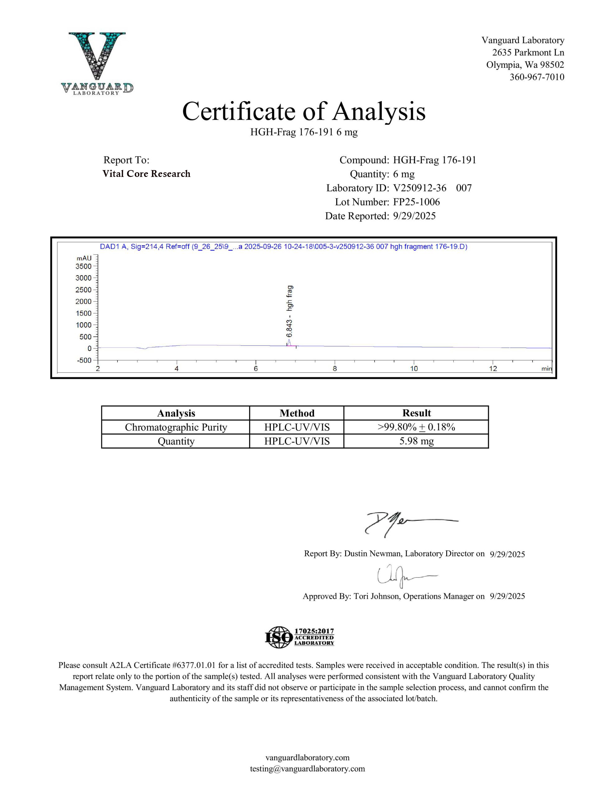 Purchase & earn 50 points!hGH FRAG 176-191 is now available. Vital Core Research reviews every batch carefully because we ensure that each product is properly produced to include proper appearance and high purity.