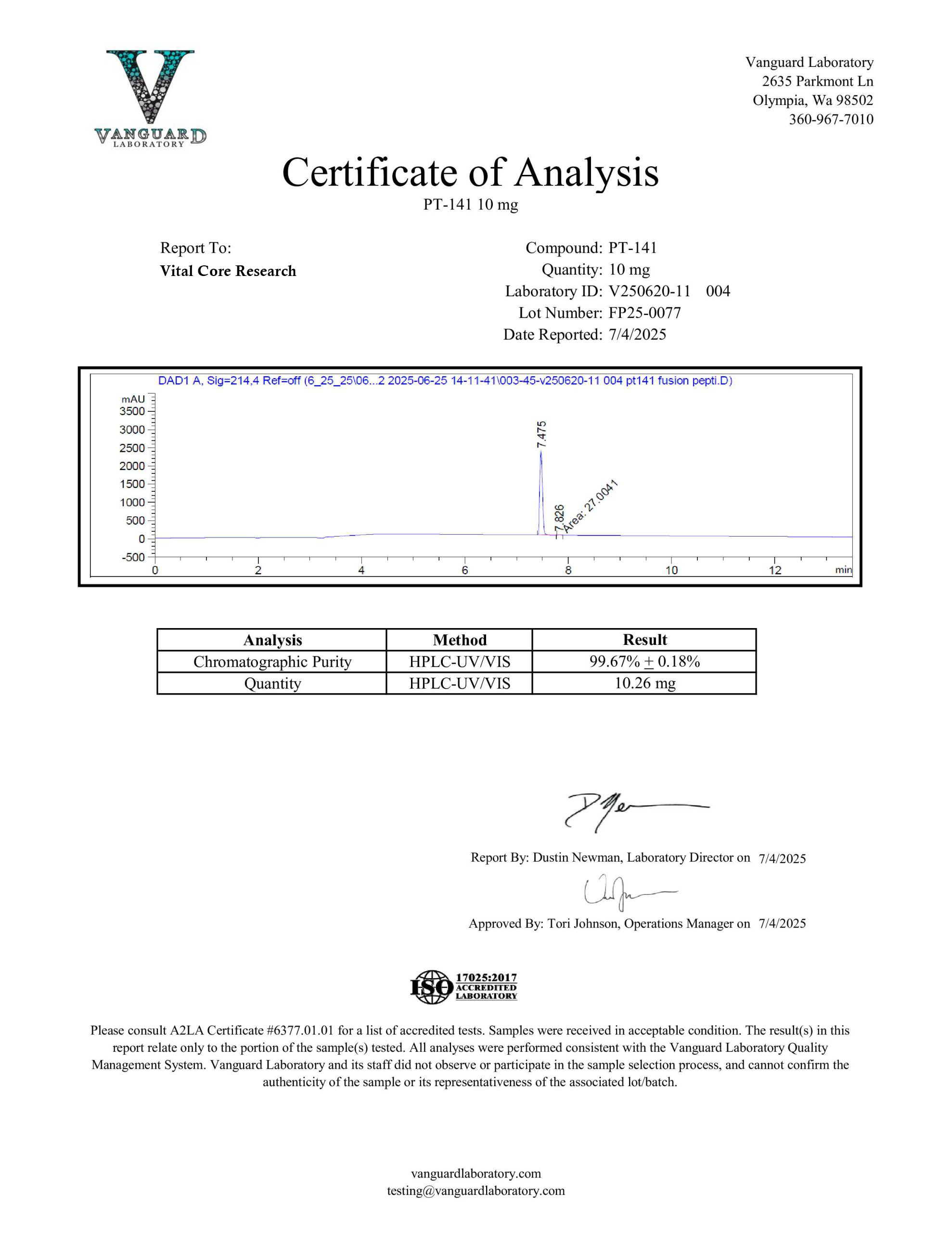 PT-141 is now available. Vital Core Research reviews every batch carefully because we ensure that each product is properly produced to include proper appearance and high purity.