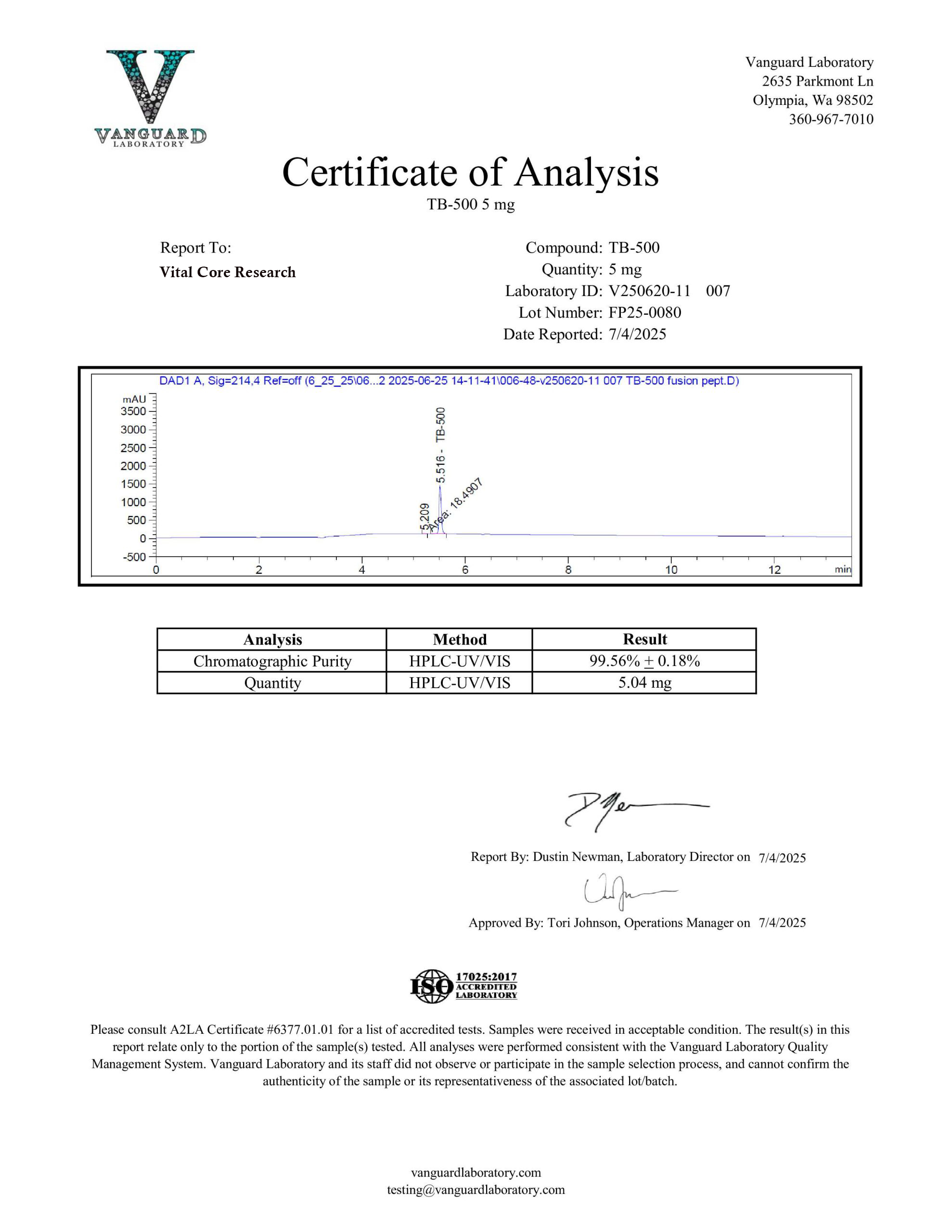 TB-500 is now available. Vital Core Research reviews every batch carefully because we ensure that each product is properly produced to include proper appearance and high purity.